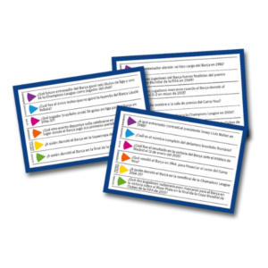 För att börja spelet blandar deltagarna kortleken och placerar den i fodralet så att svaren inte syns. Den utsedda spelaren drar ett kort och kastar tärningen. Den färg som visas bestämmer vilken kategori frågan tillhör. Spelaren svarar på en fråga från den kategori som slumpmässigt valts ut. Vid ett korrekt svar får spelaren som startade kasta tärningen igen. Om hen svarar rätt den här gången får hen ett kort. På så sätt kan hen fortsätta tills det första felaktiga svaret. Kön går sedan till nästa person. Den första spelaren som får 6 kort, dvs svarar rätt på 12 frågor, vinner. Kontakta vår försäljningsavdelning för mer information.